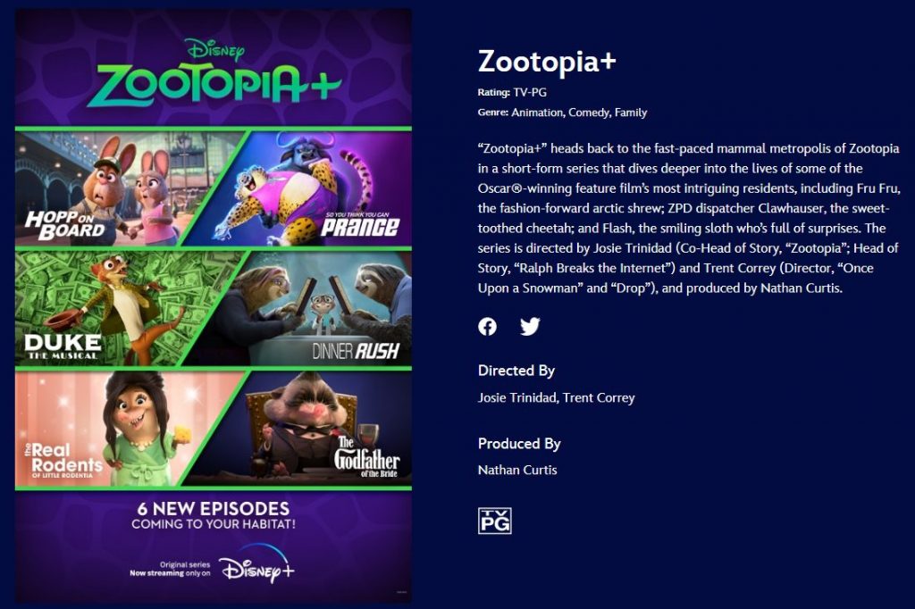 作为动画片《疯狂动物城》衍生剧的动画短剧《疯狂动物城+》近期在流媒体平台Disney+播出。