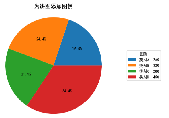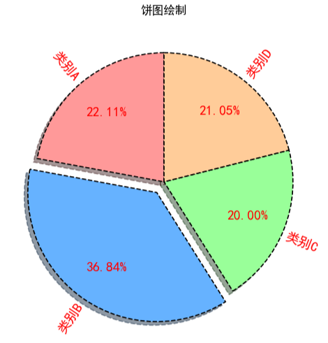 labels=['类别A''类别B''类别C''类别D'],  # 每个扇形的标签文本