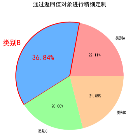 # 2. 将“类别B”扇形的百分比文本的颜色设置为红色并加粗