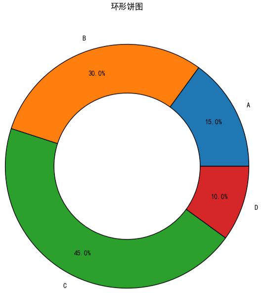 wedgeprops=dict(width=0.4, edgecolor='k')  # width控制环的厚度