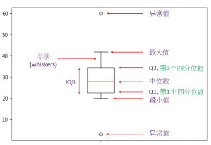 晶须(Whiskers):从箱体延伸出的线段,默认覆盖 “1.5×IQR” 范围内的所有数据点,超出这个范围的点会被标记为 “异常值”; -