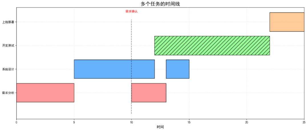 ax.set_title('多个任务的时间线', fontsize=16)