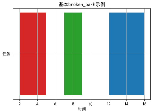 使用 broken_barh()函数绘制多个任务时间线的核心原理是通过分段区间定义和分层布局,将不同任务的非连续时间段以水平断条形式直观呈现。
