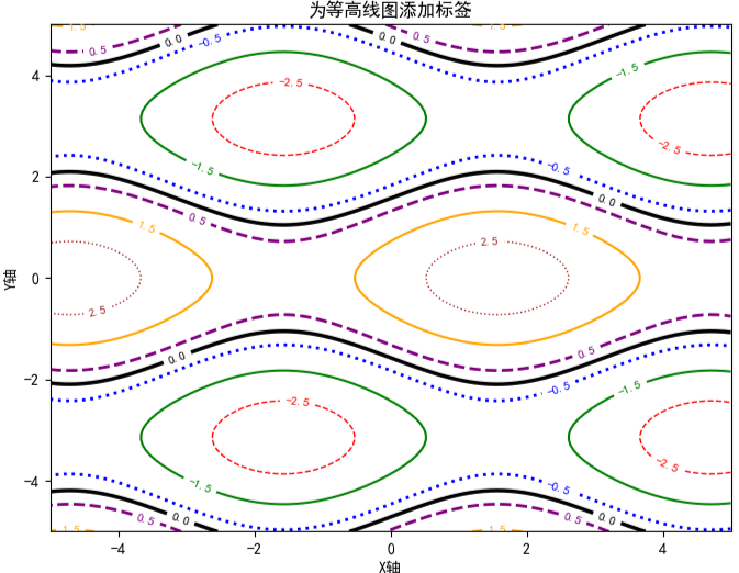 为等高线图添加标签可以更直观地理解每条等高线所代表的具体数值。在 Matplotlib 中,主要通过ax.clabel()函数来实现,其基本语法如下: