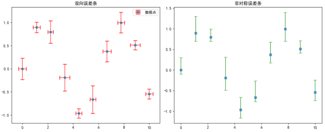 示例 1:双向误差条+非对称误差条