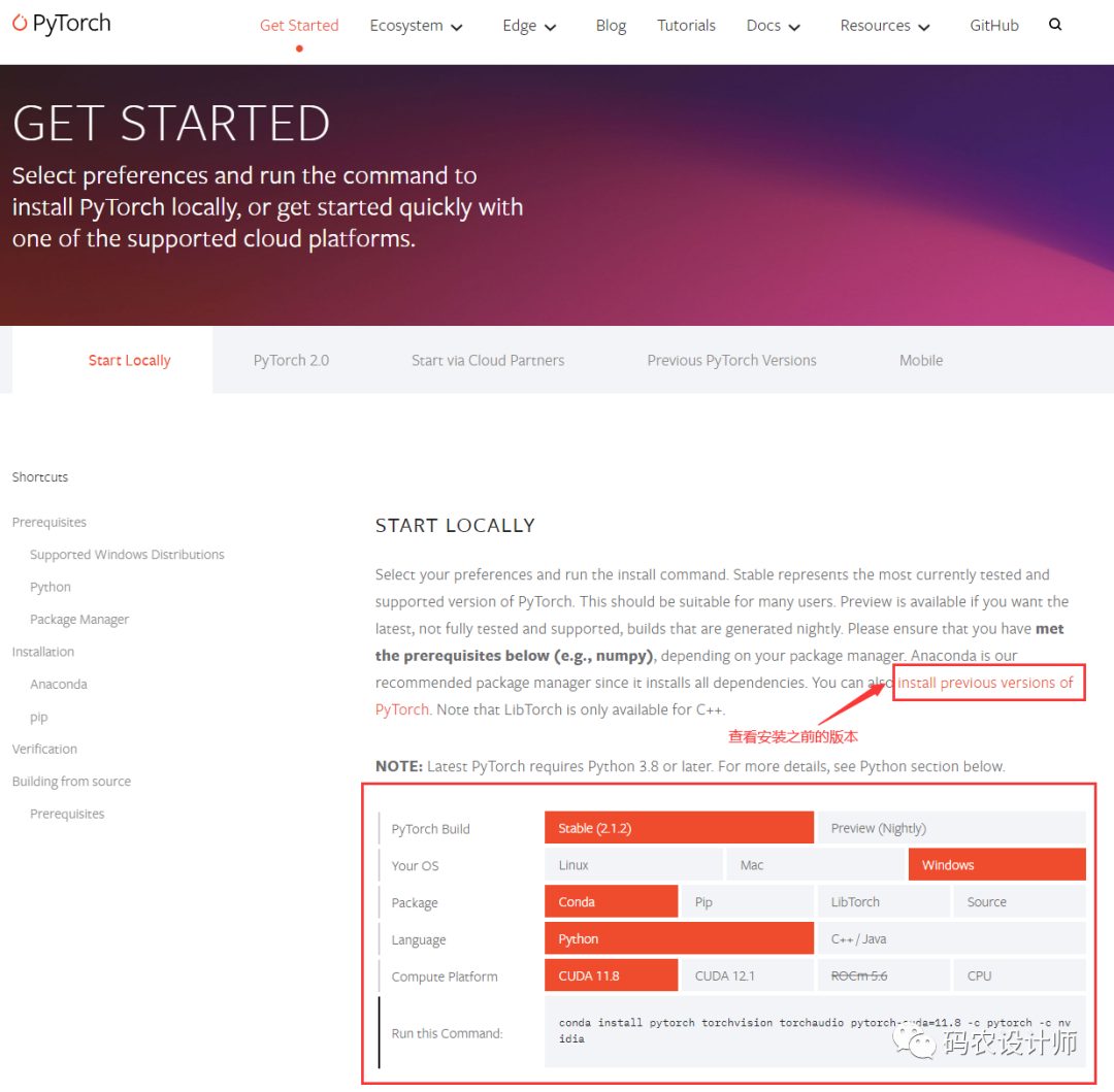 可以通过上面的链接查看安装之前的PyTorch版本。