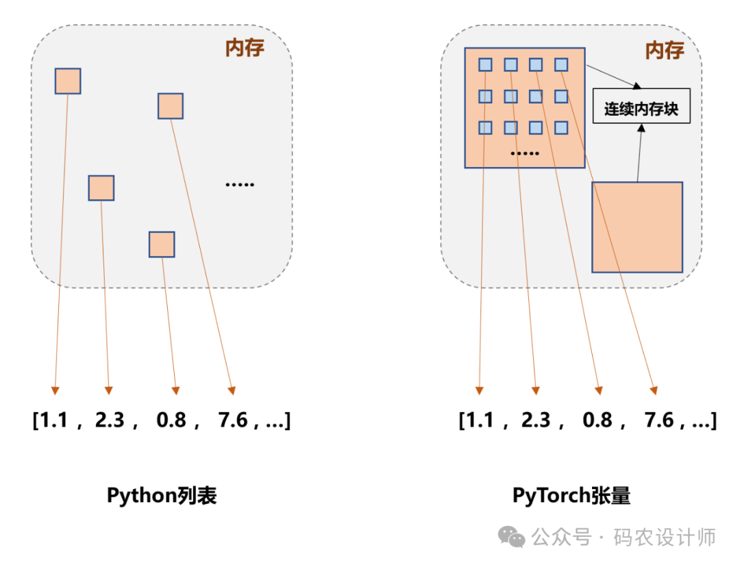 Python中列表list是一种动态数组,它能够容纳任意类型的对象,并且可以随着需要而增长或缩小。在内存分配方面,Python列表并不是直接存储数据,而是存储了对数据的引用。这意味着列表中的每个元素实际上是一个指向内存中某处的指针,该处存储了实际的数据。