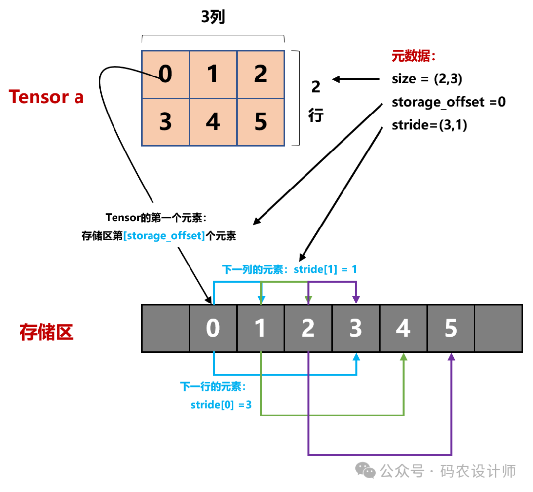 张量a中的第一个元素0,与storage的第一个元素的偏移量storage_offset=0,即存储区第1个元素; -