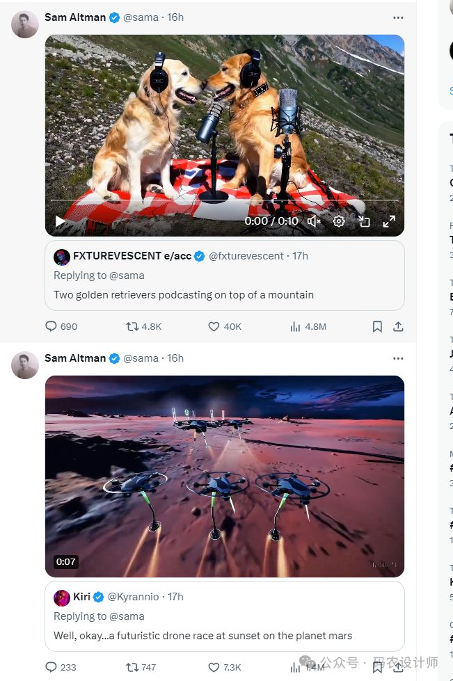 不过,你可以在社交平台上带上提示词并@OpenAI CEO Sam Altman,就有可能收到Sam Altman的 AI 视频回复。