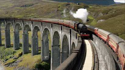 Prompt: The Glenfinnan Viaduct is a historic railway bridge in Scotland, UK, that crosses over the west highland line between the towns of Mallaig and Fort William. It is a stunning sight as a steam train leaves the bridge, traveling over the arch-covered viaduct. The landscape is dotted with lush greenery and rocky mountains, creating a picturesque backdrop for the train journey. The sky is blue and the sun is shining, making for a beautiful day to explore this majestic spot.格伦菲南高架桥是英国苏格兰一座历史悠久的铁路桥,横跨马莱格镇和威廉堡镇之间的西高地线。蒸汽火车从桥上驶出,驶过布满拱门的高架桥,景色令人惊叹。郁郁葱葱的绿色植物和岩石山峦点缀其间,为火车之旅营造了如诗如画的背景。天空湛蓝,阳光明媚,是探索这个壮丽景点的好天气。