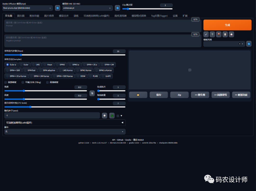 运行完成后会自动在浏览器打开Stable Diffusion操作界面。