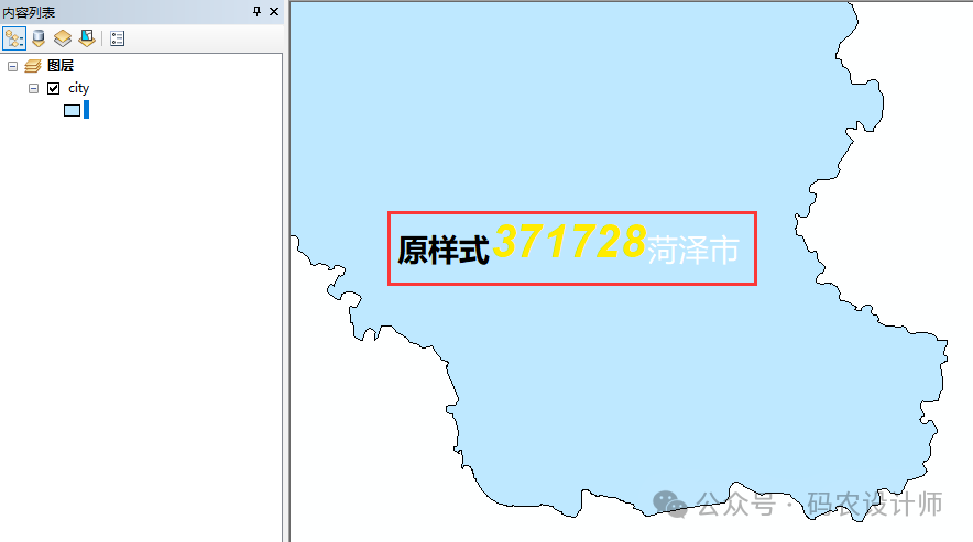 u"原样式" +"<CLR red='255' green='236' blue='0' alpha='100'><FNT name='Arial' size='12'><ITA>" + [PAC] + "</ITA></FNT></CLR><CLR red='255' green='255' blue='255' alpha='100'><_BOL>" + [city] + "</_BOL></CLR>"