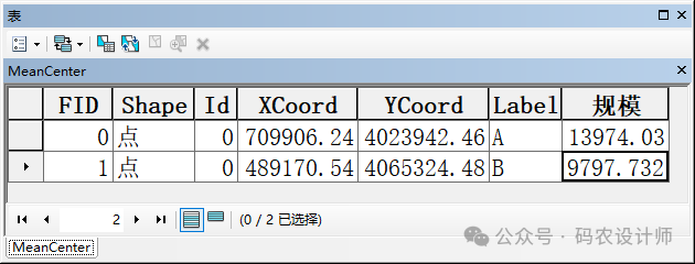 打开属性表,XCOORDYCOORD字段为心点要素的X和Y,规模字段为根据设置的尺寸字段分组计算的平均值。