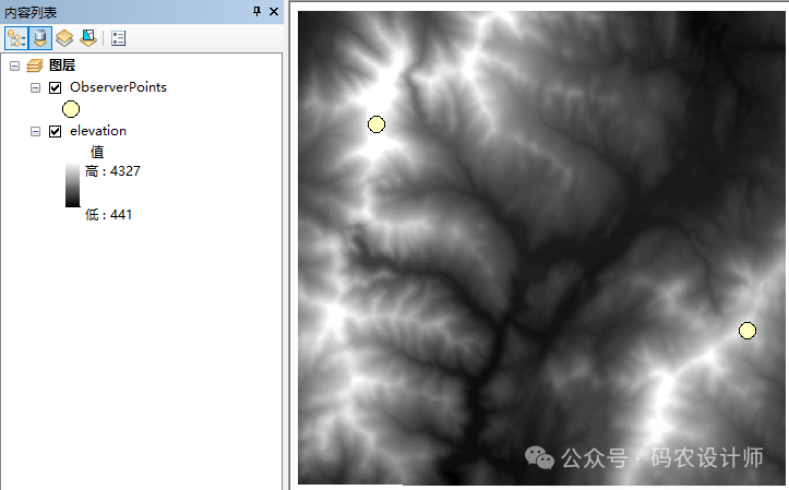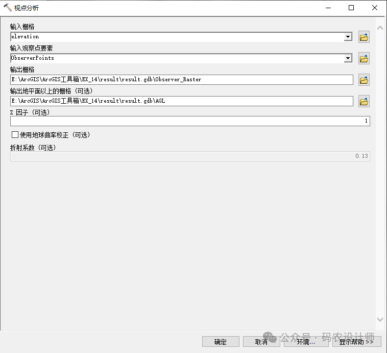 选择【系统工具箱→Spatial Analysis Tools→表面分析→视点分析】工具,进行设置。