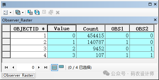 OBSn字段:对应于每个视点的新项,为 OBS1、OBS2…OBSn,其中 n 是视点数,以此记录每个像元的可见性(可见时值为1)。