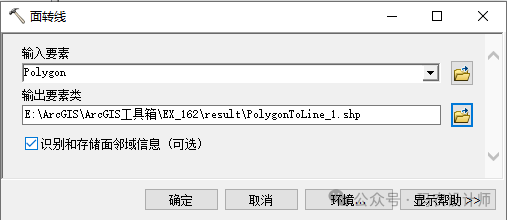 输出要素类中将包含由面边界转换而来的线,通过识别和存储面邻域信息选项来设置是否考虑邻近面: