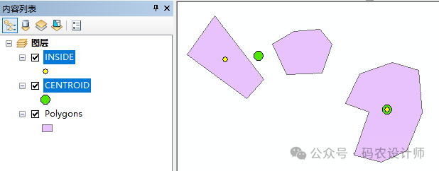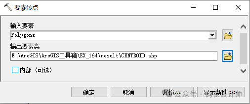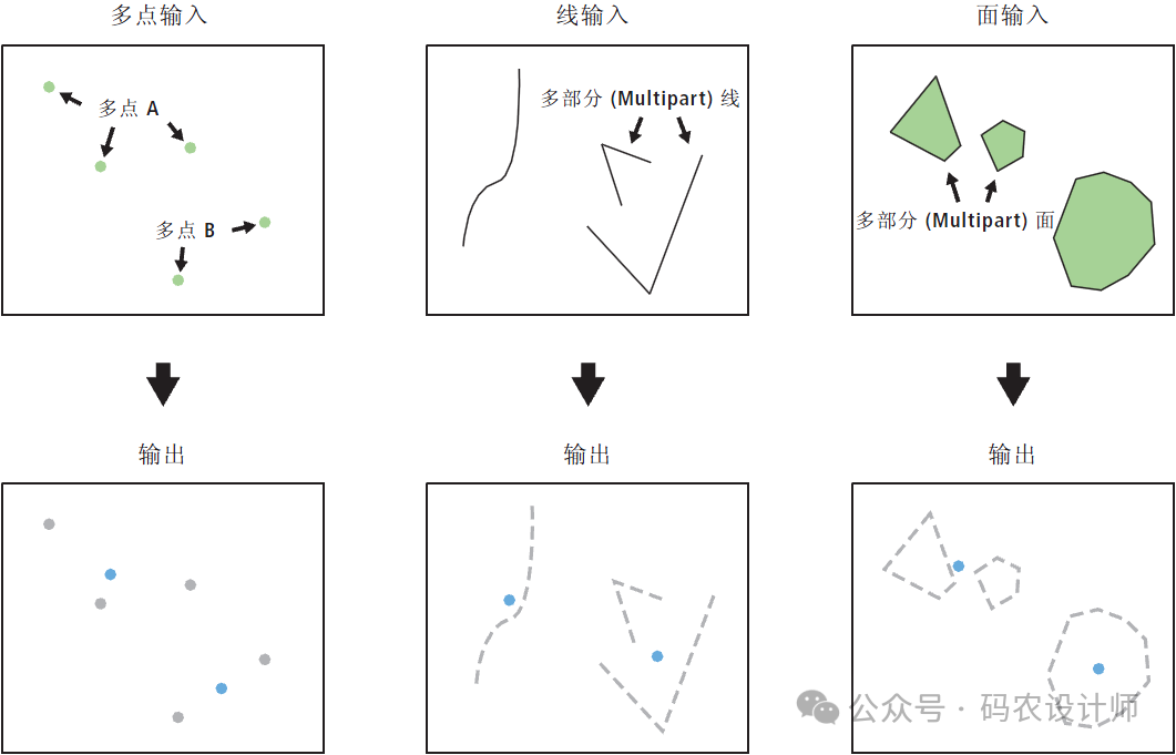对于输入面要素:输出点将位于面的重心(质心)处。