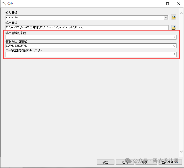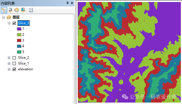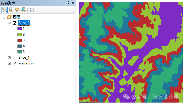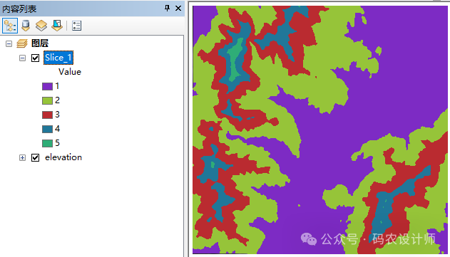 分割方法:输入栅格中值的分割方式,可选项包括EQUAL_INTERVAL(等间距分割法)、EQUAL_AREA(等面积分割法)、NATURAL_BREAKS(自然分割法); -