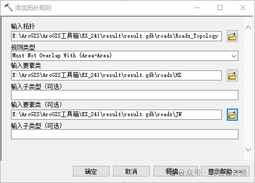 输入子类型:输入要素的子类型。如果输入要素上不存在子类型,或者要将规则应用于要素类中的所有子类型,则将此留空。