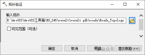 可见范围(可选):不勾选时验证整个拓扑图层,勾选时仅验证当前地图视图的可见范围。