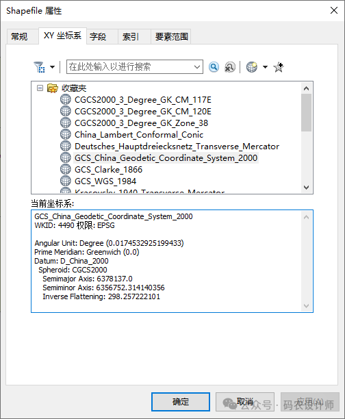 在【目录】窗口,右击转换后的地理数据,选择【属性】,在图层属性对话框中切换至【XY坐标系】选项卡,即可查看数据图层的坐标信息。