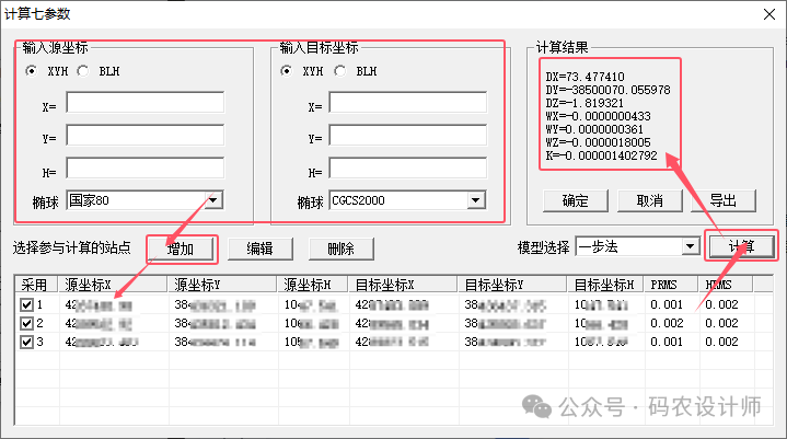 因此,本次选择七参数法(COORDINATE_FRAME),本次使用COORD GM软件获取参数值。