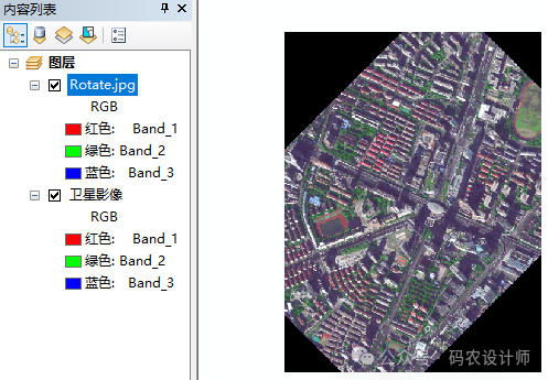 输出栅格数据集:旋转后的栅格数据存储位置。可以指定文件扩展名,如 .tif(TIFF 格式)、.jpg(JPEG 格式)等。其中,将栅格数据集存储到 JPEG 文件、JPEG 2000 文件、TIFF 文件或地理数据库时,可在地理处理环境中指定压缩类型和压缩质量。 -
