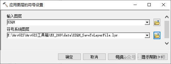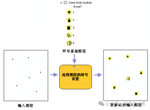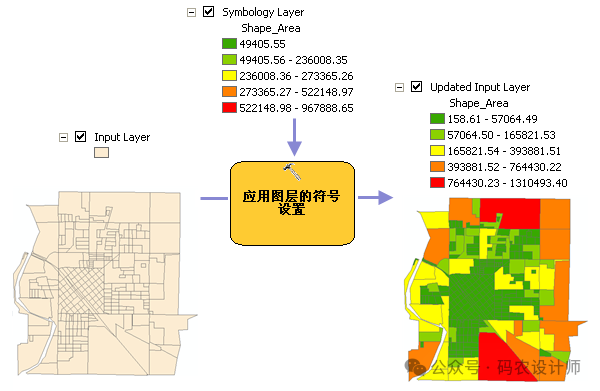 应用图层的符号设置工具用于将来自图层的符号系统应用到输入图层。