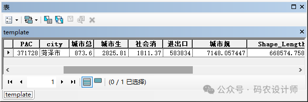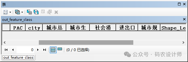 设置完成,点击确定,将创建一个空要素类,打开其属性表可以看到包含模板要素类中的属性字段。