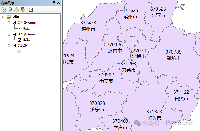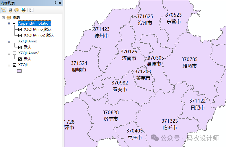 设置完成,点击确定,得到合并后的标记要素类。因为未勾选创建单个注记类选项,因此在输出要素类中会为每个输入注记类创建单独的注记类。