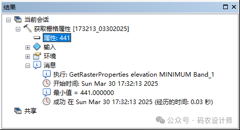 设置完成,点击确定。在地理处理结果窗口中可以查看获取的栅格属性值信息。