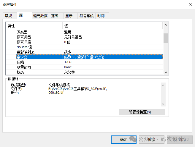 再次查看其图层属性,可以看到栅格数据的金字塔级别已经设置为6。