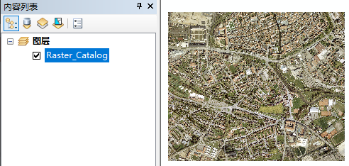 加载【raster_catalog】栅格目录,将栅格目录拖动到地图视图中,即可将其作为图层显示。