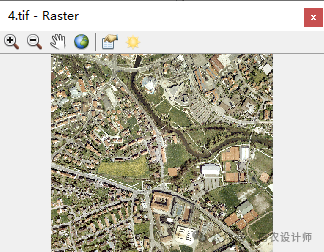 打开其属性表,可以看到其中包含4个栅格数据集。其中,表中的 Raster 字段是一个特殊字段,用于存储栅格数据集的引用或实际数据。单击每个栅格数据后的箭头即可显示栅格数据缩略图,双击缩略图会弹出栅格数据窗口。
