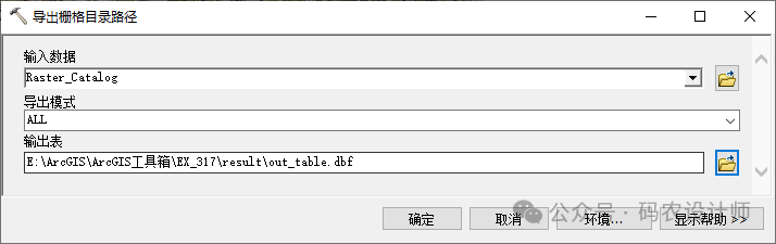 选择【系统工具箱→Data Management Tools→栅格→栅格目录→导出栅格目录路径】工具,在弹出的对话框中进行设置。