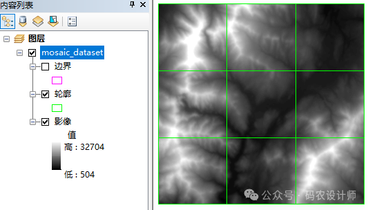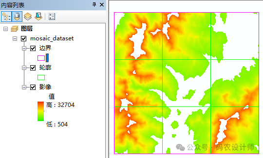 设置完成,点击确定,得到更新后的镶嵌数据集。可以看到设置的有效数据范围外的值被划分为了NoData。