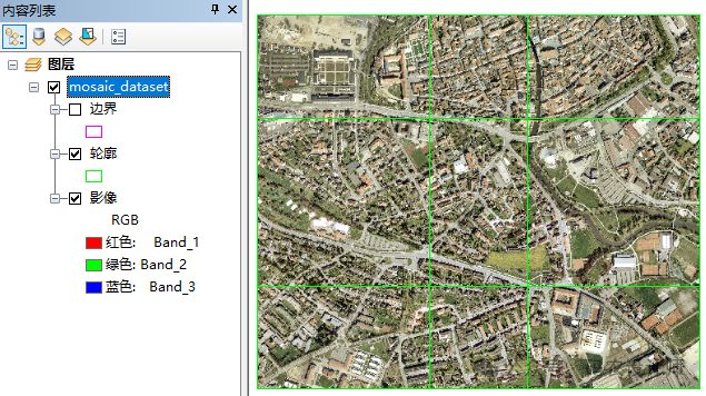 设置完成,点击确定,得到更新后的镶嵌数据集。镶嵌数据集中的轮廓线表格中将包含一个名为 Candidate 的新字段,该字段确定相应操作中要使用的影像。