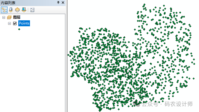 点转栅格工具用于将点要素转换为栅格数据集。可以将包含点或多点要素的任意要素类(地理数据库、shapefile 或 coverage)转换为栅格数据集。