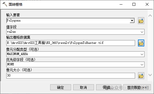 输入要素:要转换为栅格的面输入要素数据集。 -