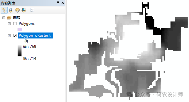 面转栅格工具用于将面要素转换为栅格数据集。可以将包含面要素的任意要素类(地理数据库、shapefile 或 coverage)转换为栅格数据集。