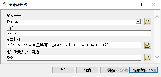 输入要素:要转换为栅格数据集的输入要素数据集。 -