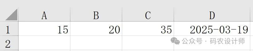 # 第一个参数 1 表示行号(从 1 开始计数),第二个参数 1 表示列号(从 1 开始计数),第三个参数 15 是要写入的值
