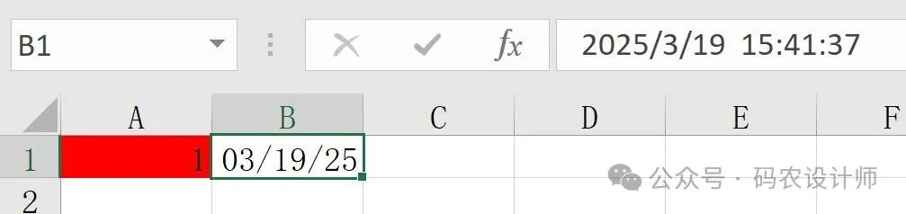 # 在第 1 行第 2 列的单元格(即 B1 单元格)写入当前日期和时间