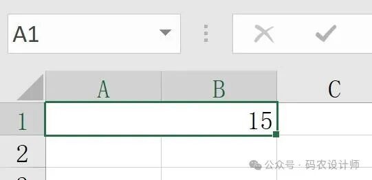 # ws[1][1] 表示第一行第一列的单元格(索引从 0 开始,但这里库的索引从 1 开始),将数字 15 写入该单元格