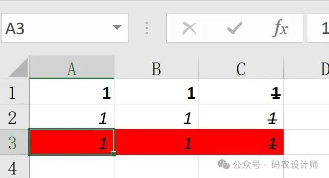 # 指定从 C1 到 C3 的单元格范围将这个范围内单元格的字体样式设置为带有删除线