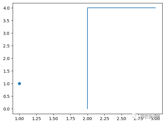 2>>> line = LineString([(2, 0), (2, 4), (3, 4)])