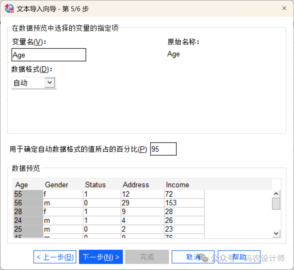 该步骤用于控制读取每个变量的变量名和数据格式,也可以指定要排除的变量。