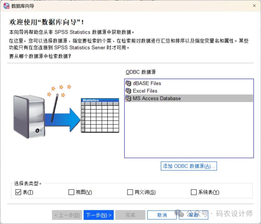 SPSS可以通过【数据库向导(Database Wizard)】从数据库中导入数据。本文以Microsoft Access数据库为示例进行介绍。