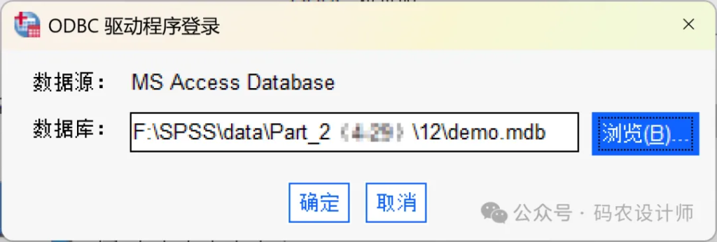 点击浏览按钮,选择目标数据库文件(本次示例为demo.mdb),点击确定。有些数据源可能需要输入登录名、密码及其他信息。