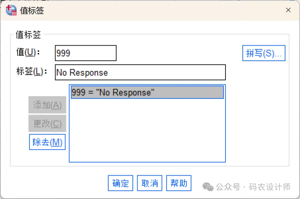 单击确定保存更改,此时在「数据视图」窗口再次输入999时会自动识别为缺失值并显示为值标签。